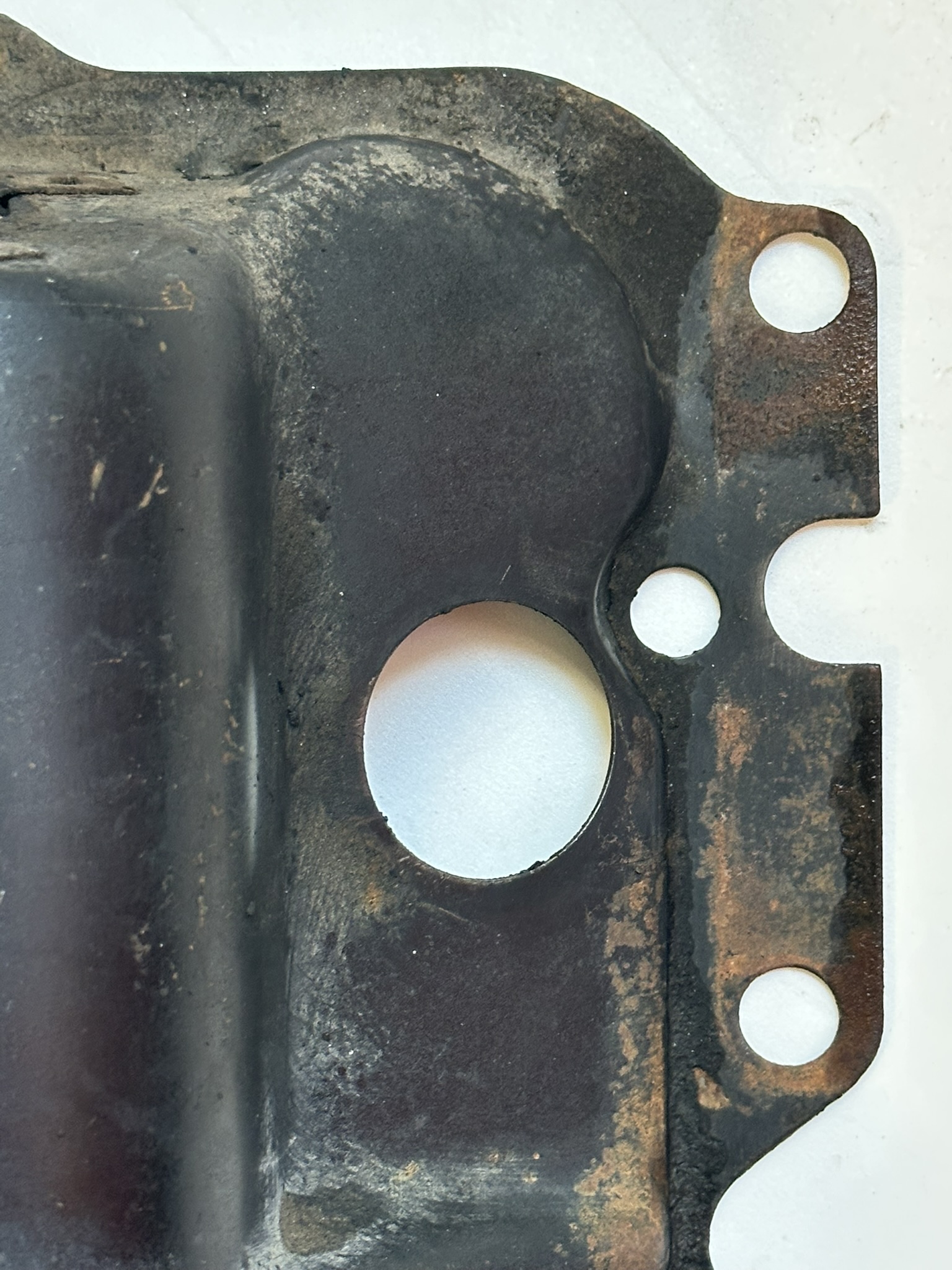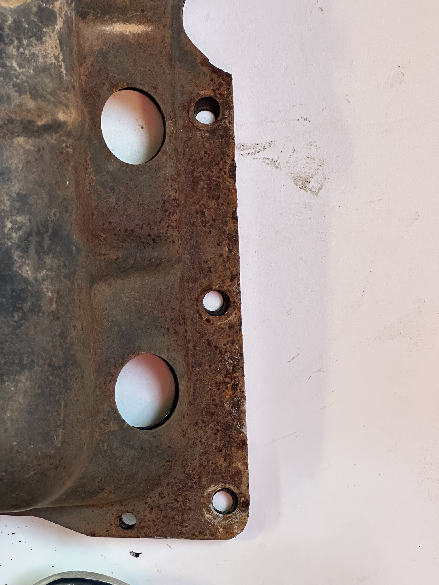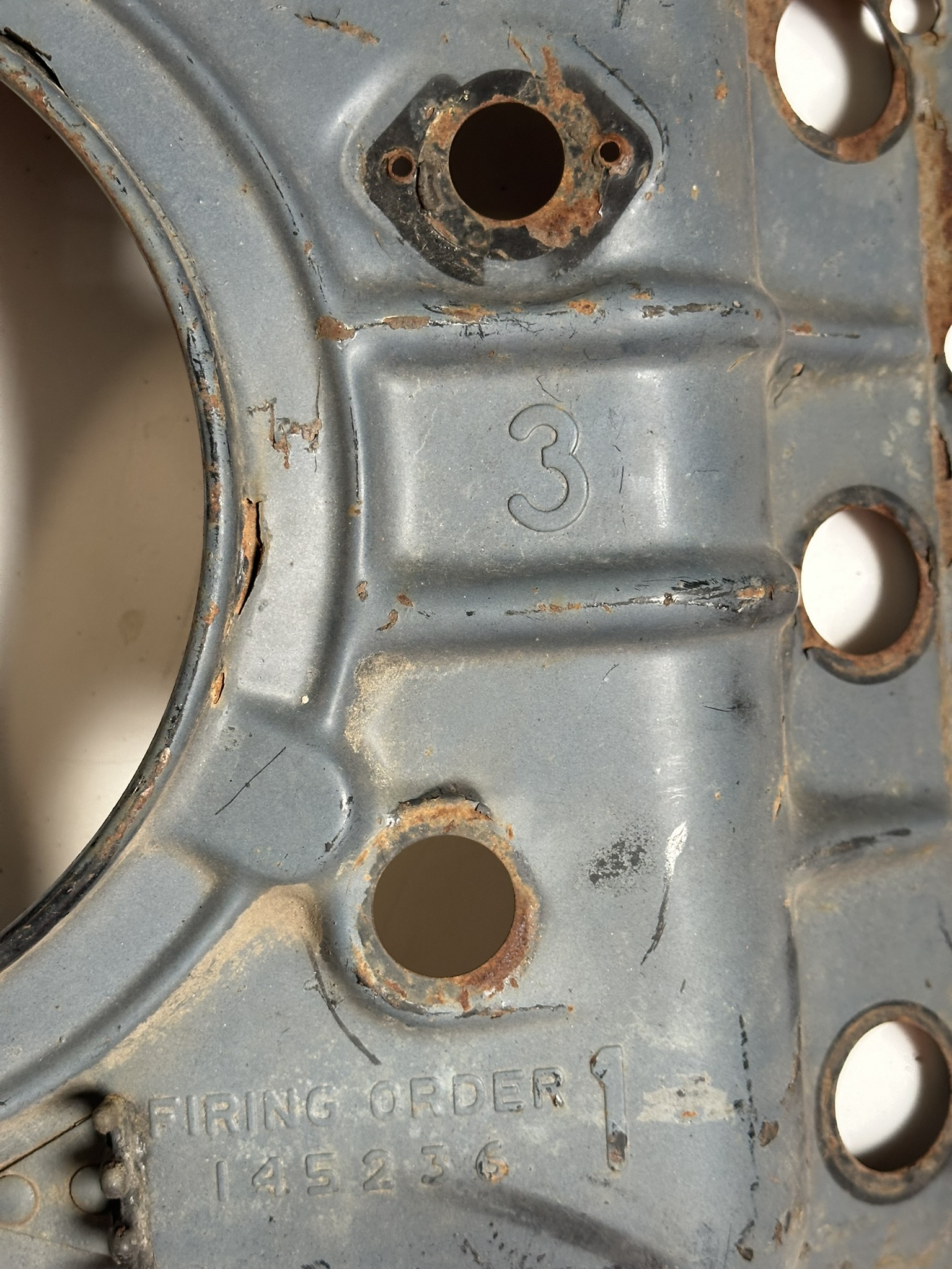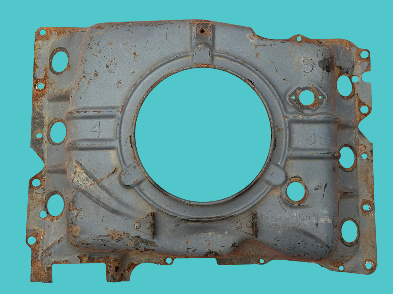 - Holes stamped for riveting of the two spark plug wire guides. This design was carried forward to the end of Corvair production.