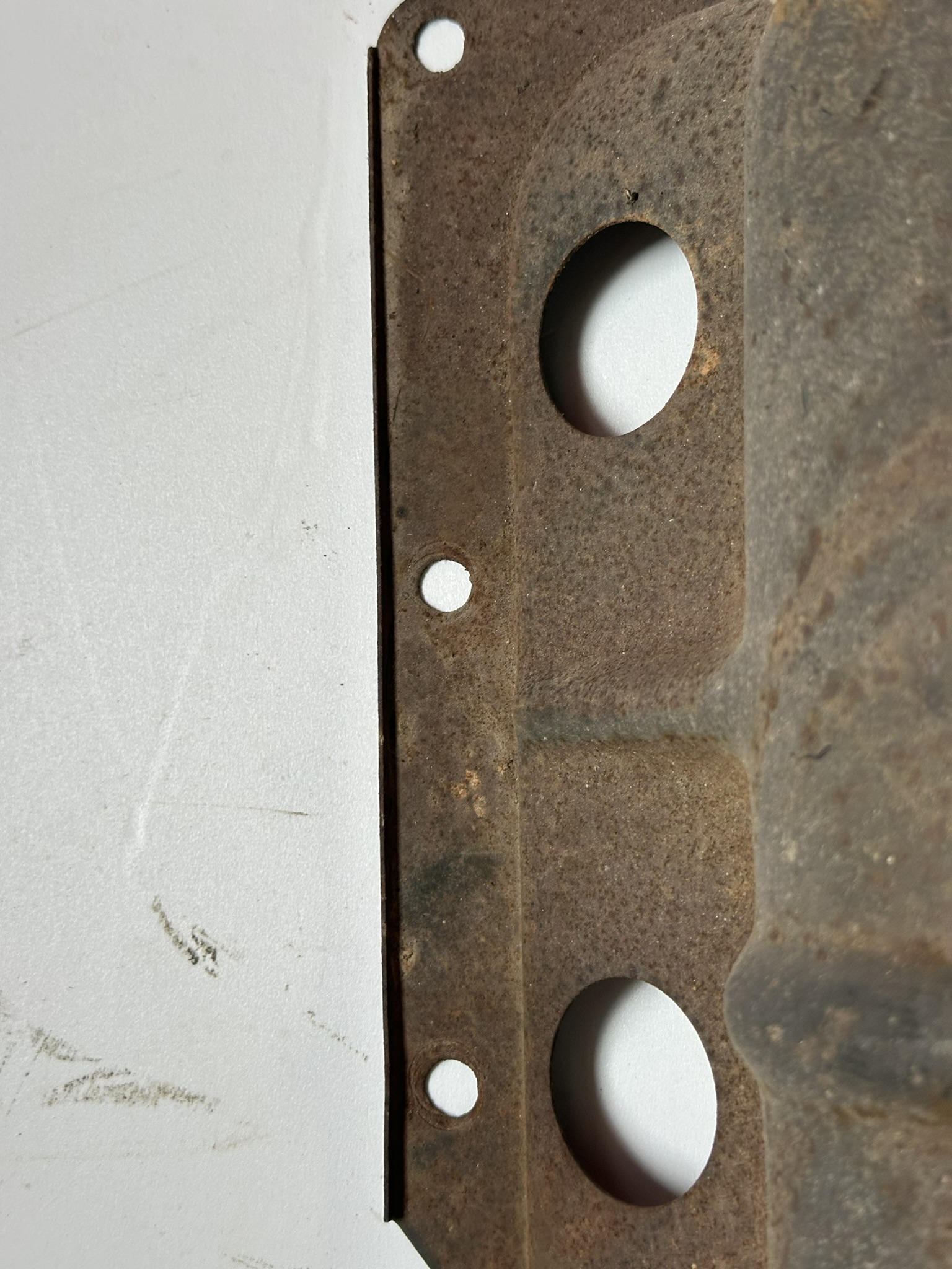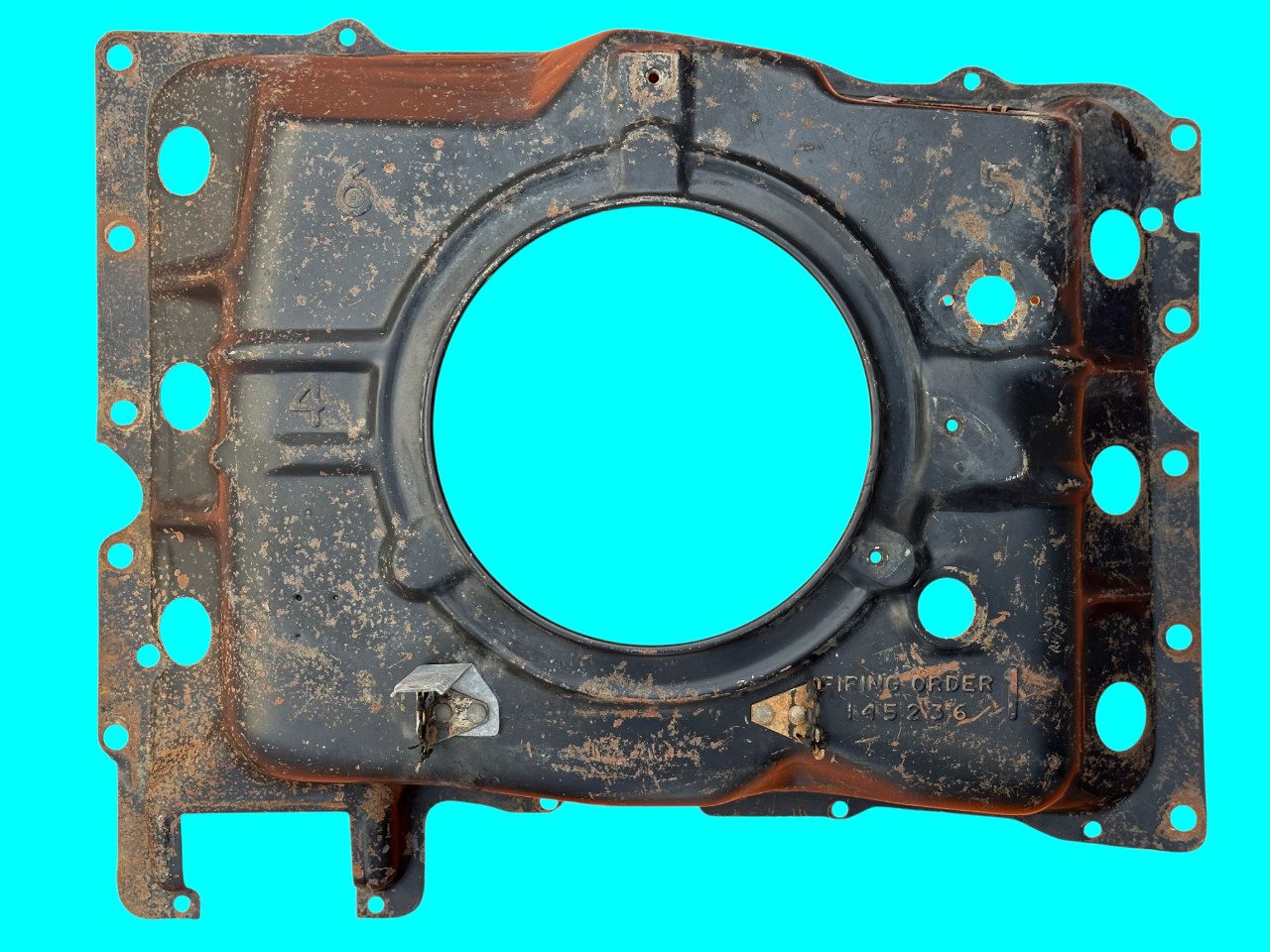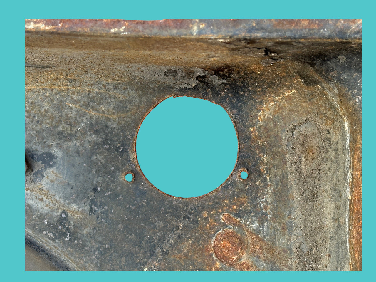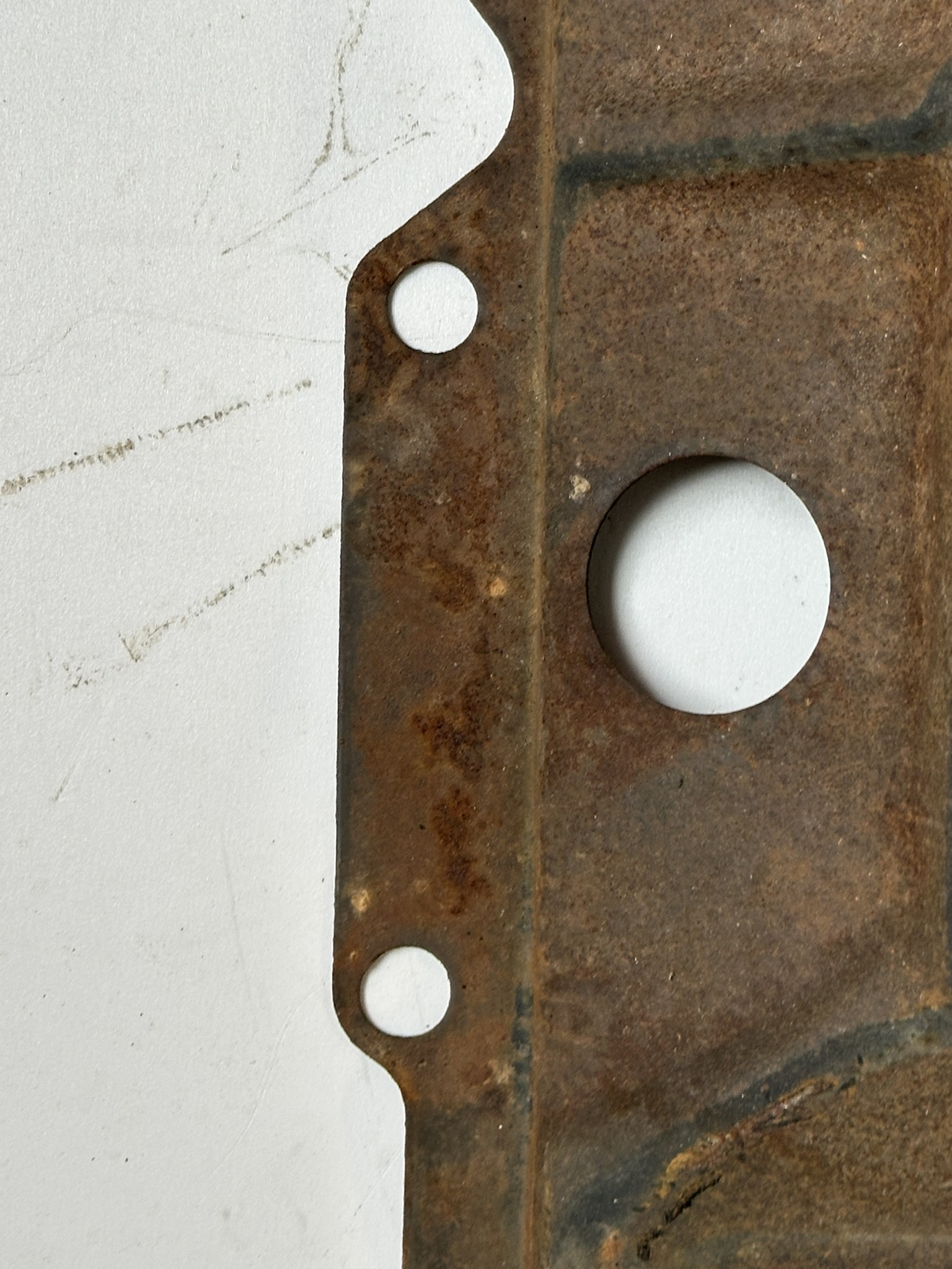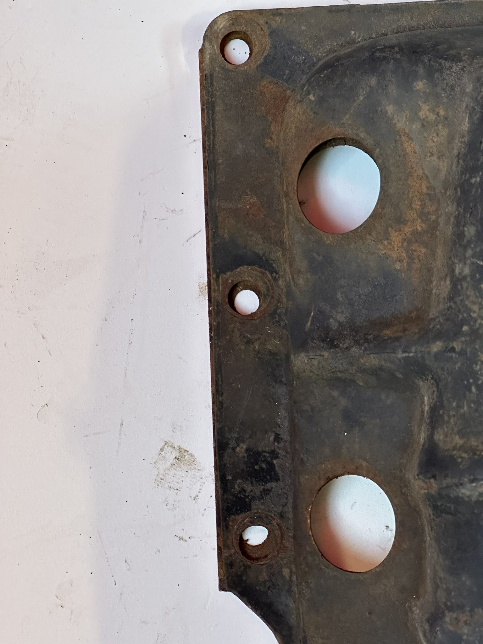 - Holes stamped for riveting of the two spark plug wire guides. This design was carried forward to the end of Corvair production.