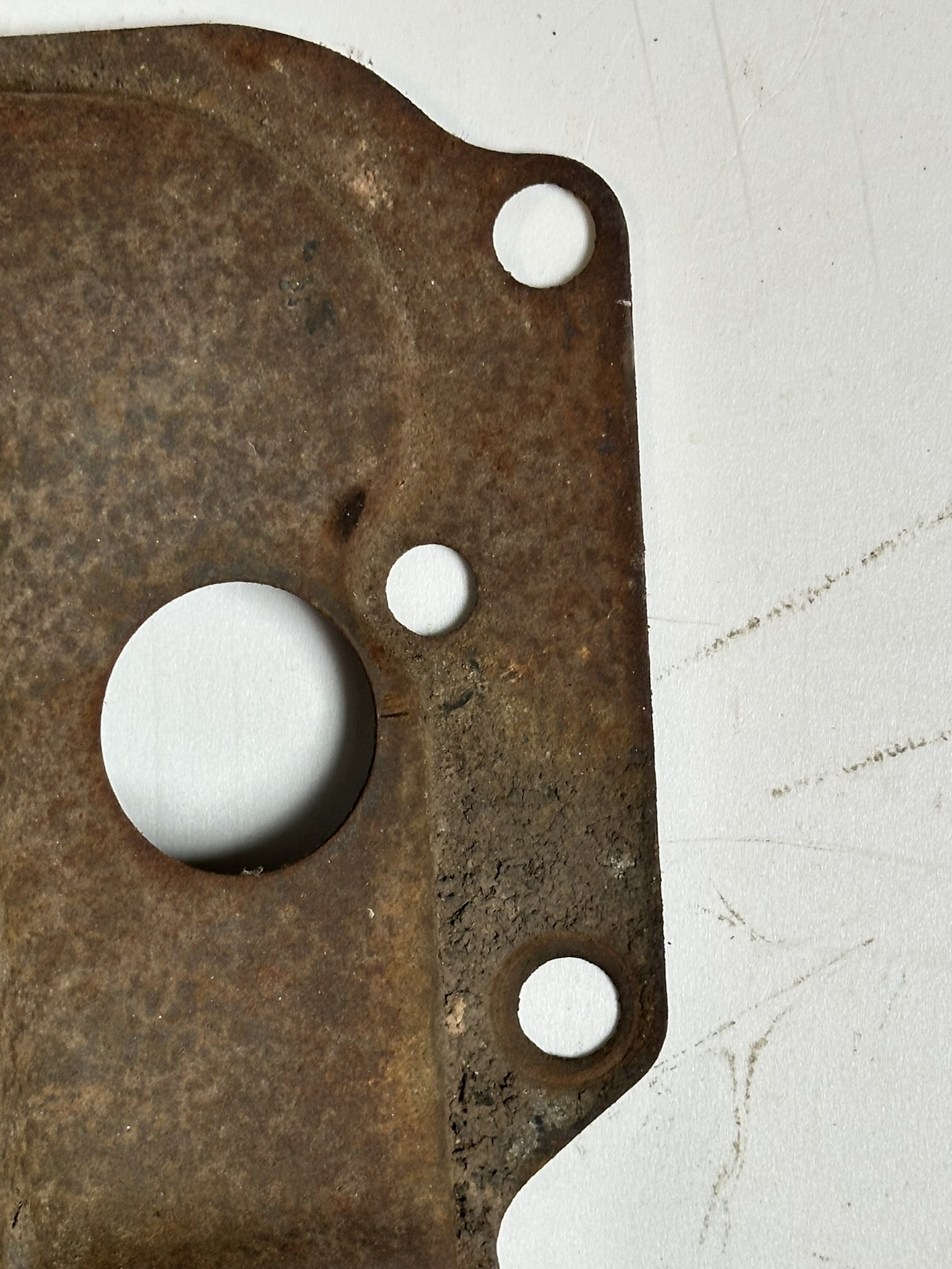- A stamped depression and hole by #6 spark plug for choke heater tube (1962-69, for choke rods)