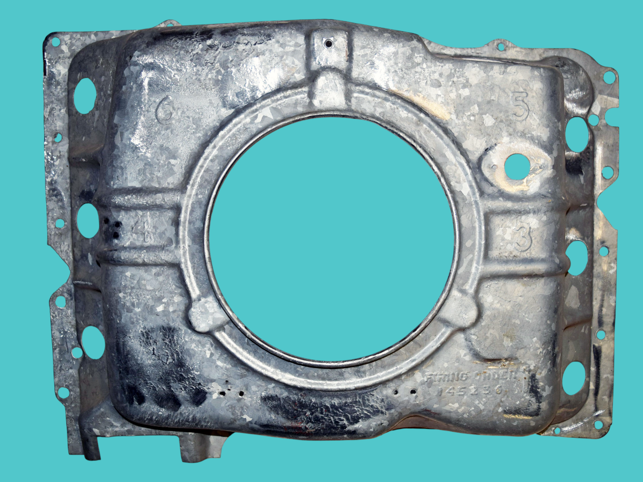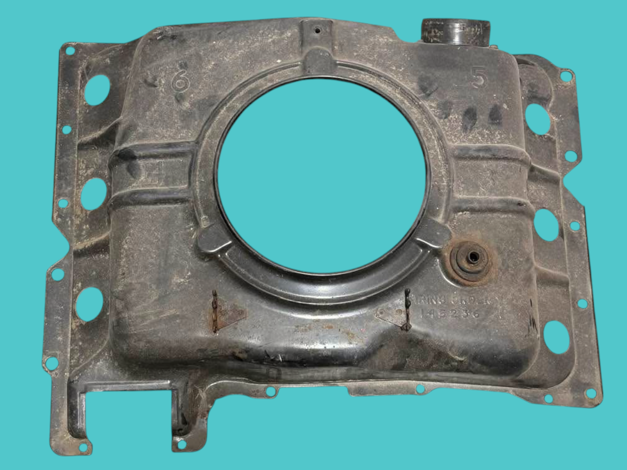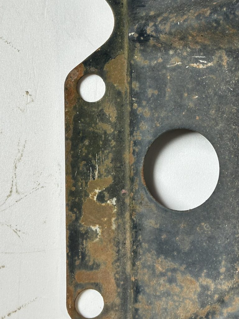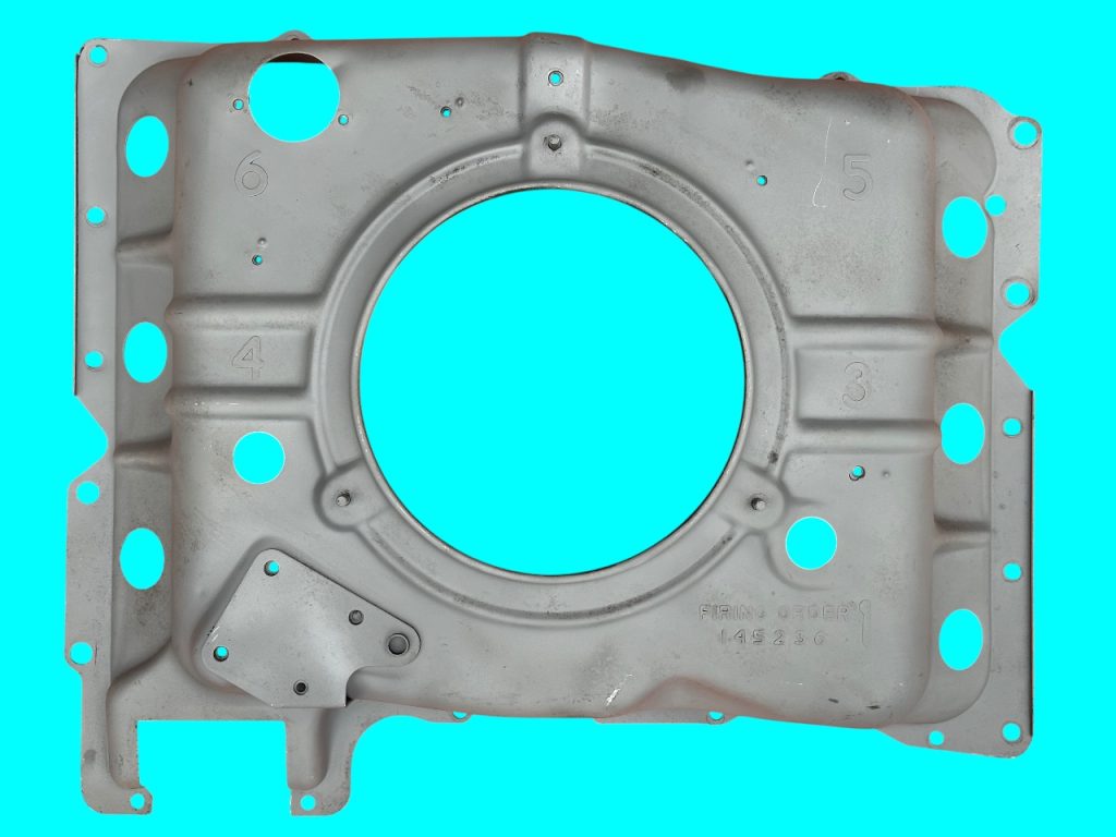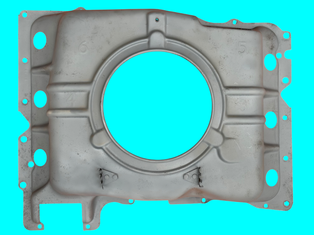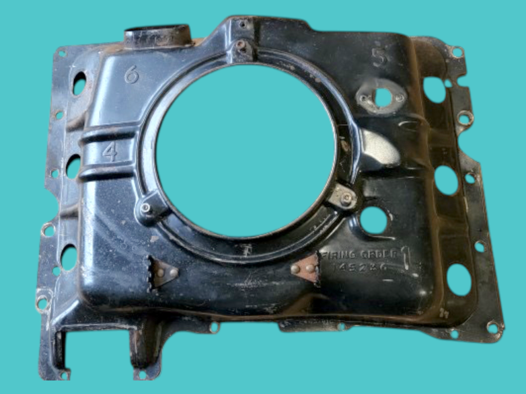 - Midyear Change: A 3/4″ notch near the right side choke tube hole, added in Spring 1962 for the turbocharger oil drain pipe of the Spyder; carried forward on all later shrouds.