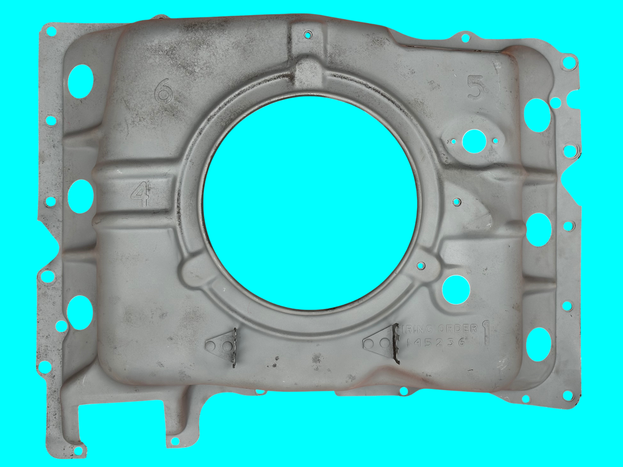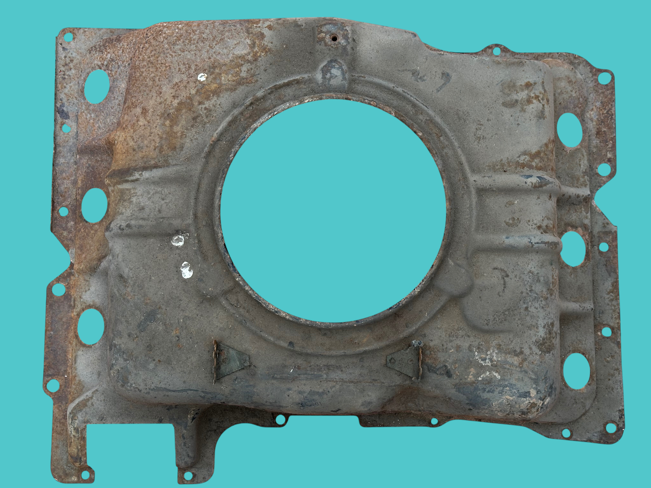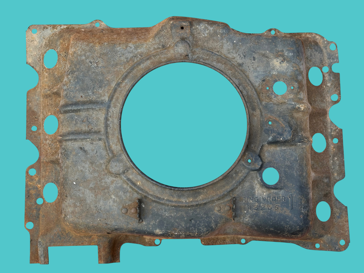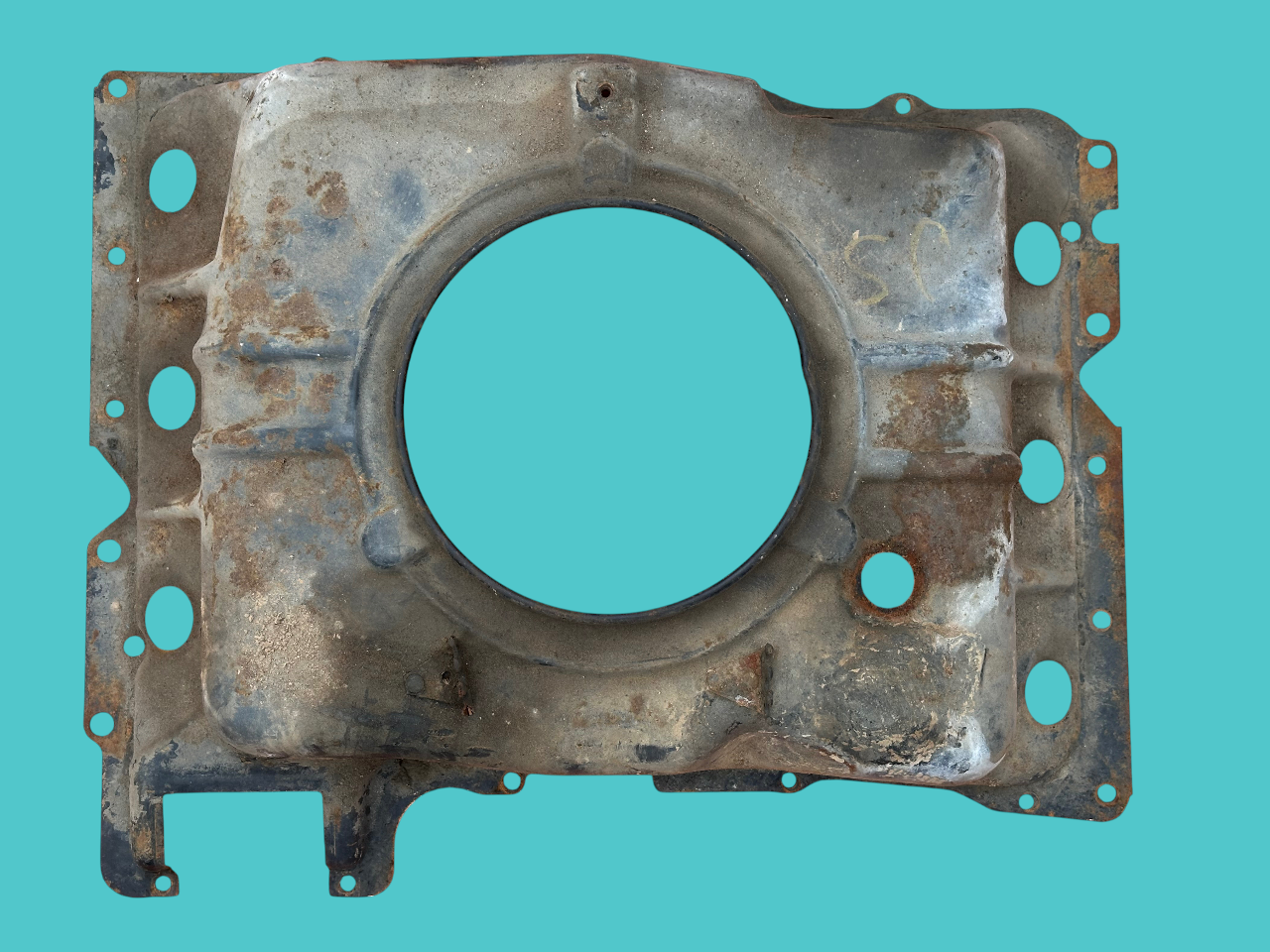 - Midyear Change: A 3/4″ notch near the right side choke tube hole, added in Spring 1962 for the turbocharger oil drain pipe of the Spyder; carried forward on all later shrouds.